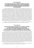 В статье рассматриваются вопросы изменения в первой четверти XX века технологии и использованных материалов в художественном промысле ростовская финифть. Предметом исследования являются произведения живописи по эмали этого периода из собрания Ярославского музея -заповедника, а также современные им источники и литература. В статье отражена деятельность органов государственной и местной власти, направленная на сохранение промысла. Особое внимание в статье уделено работе в промысле специалистов по керамике — деятельности технолога А. М. Соколова и художника С. В. Чехонина. Профессор Санкт-Петербургского практического технологического института А. М. Соколов изучил используемые в промысле технологии, оборудование и материалы. Он предложил разработать эмалевый грунт для живописи и организовать в Ростове учебно-показательную мастерскую, которая бы имела специальные печи для обжига эмали и снабжала мастеров промысла необходимыми материалами. Созданной в 1912 г. Учебно-показательной финифтяной школой с 1914 по 1917 г. по назначению Министерства Земледелия руководил С. В. Чехонин. Результатом его деятельности стали произведения учеников школы, представленные в статье. На основе опубликованных отчетов, составленных заинтересованными в проблеме лицами, и визуального анализа произведений, выполненных учениками ростовской учебно-показательной финифтяной школы, делаются предварительные выводы об изменениях в технологии и материалах, произошедших в промысле в конце десятых — начале двадцатых годов XX века.