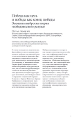 В статье исследуются семантические, философские и институциональные аспекты «победы» как конечной цели и как регулятивного принципа, формирующего современную социальную, политическую и военную жизнь. Отталкиваясь от понимания победы Карлом фон Клаузевицем и советскими доктринами, автор рассматривает, как это понятие функционирует в качестве метаинституционального протокола, который структурирует антагонизм, легитимирует власть и определяет социальный порядок. В диалоге с Карлом Шмиттом, Эрихом Кауфманом и современными военными теоретиками в статье реконструируется генеалогия победы как акта исключения и асимметрии. Победа анализируется не просто как военное или политическое событие, а как перформативный механизм, который стабилизирует неравенство и легитимирует господство. «Победоносный разум» описывается и как социальный габитус, и как эпистемическая форма, поддерживающая современные институты. В заключение статья предлагает критическое переопределение победы — такое, которое сопротивляется ее разрушительной, максималистской логике и рассматривает «победу над победой» как необходимое условие для постконфликтного социального обновления и демократического равновесия