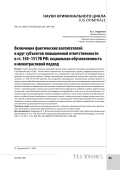 В свете усиления уголовно-правовой охраны прав и законных интересов несовершеннолетних в уголовный закон в 2022 г. были внесены изменения, не коснувшиеся, однако, дифференциации ответственности за вовлечение несовершеннолетних в совершение преступления или антиобщественных действий по признакам субъекта. Между тем проблема представляется актуальной, поскольку закрепленный в ст. 150–151 УК РФ перечень лиц нуждается в расширении. Аргументация автора строится на оценке социальной обусловленности уголовного закона в данной части и исследованиях представителей семейно-правовой науки, обращающихся к понятию фактического воспитания. В рамках указанных исследований установлена содержательная аналогия отношений по фактическому воспитанию несовершеннолетних с участием других членов семьи различной степени родства или свойства́ и детско-родительских отношений с участием биологических или юридических родителей, в том числе в части воспитания. Что касается оценки рассматриваемых уголовно-правовых запретов с точки зрения социальной обусловленности как обязательного требования к уголовному закону, то автор использует теорию социальных статусов и ролей, позволяющую выявить вытекающие из статусов других членов семьи возможности ролевого поведения, включая криминогенные его варианты в виде оказания негативного воздействия на несовершеннолетнего в рамках фактического воспитания.