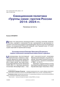 Автор рассматривает вопросы институциализации «Группы семи», расширения её проблематики, правового содержания её официальных документов. Проанализирована роль G7 как современной «санкцион ной коалиции», форма и правовое содержание её санкционных актов.