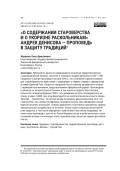 Публикуется ранее не издававшееся сочинение лидера Выговской старообрядческой общины, писателя и полемиста Андрея Денисова (1654–1730). Созданное в жанре проповеди в начале XVIII в., это сочинение отразило важные для старообрядчества идеи связи с традициями, в первую очередь с церковными устоями Древней Руси. Опора на «предание» была главным аргументом в спорах с идейными противниками, представителями официальной церкви. Проповедник ссылается на авторитетные источники, в том числе на грамоту Константинопольского патриарха Иеремии 1589 г. об учреждении на Руси патриаршества, на «Книгу о вере» (1648), при этом фокусируется на эсхатологическом аспекте теории «Москва — Третий Рим». По логике автора сочинения, доказательством того, что «Третий Рим» пал, являются реформы патриарха Никона. Для убеждения в своей правоте писатель использует, помимо идеологем и логических аргументов, приемы эмоционального воздействия на читателя. Этому служат специальные риторические средства, в том числе обращения к крестителю Руси князю Владимиру. Начиная свою проповедь с цитаты из Плача Иеремии, автор и далее включает в свое сочинение мотивы и интонации плача, оценивая свою эпоху как «время, достойное плача»