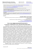 Введение. Актуальность исследования заключается в разработке и теоретическом обосновании модели и комплекса педагогических условий, направленных на формирование культуры информационной безопасности среди студентов технического вуза, включающего не только передачу технических знаний и навыков, но и развитие понимания значимости информационной безопасности как неотъемлемой части профессиональной компетентности будущих специалистов в сфере высоких технологий.
