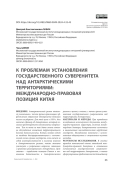 К проблемам установления государственного суверенитета над антарктическими территориями: международно-правовая позиция Китая (2024)
