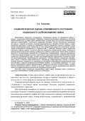 Представлены результаты исследования, посвященные одному из направлений работы с семьей - социальному сопровождению. Проведена социологическая оценка современного состояния данной деятельности, а также анализ проблем семьи, которые могут быть решены посредством социального сопровождения. Рассмотрено содержание ключевого понятия «социальное сопровождение семьи» с позиций системного, структурно-функционального подходов, сетевой теории и теории социальной адаптации. В результате предпринята попытка определить сущность категории «социальное сопровождение семьи». Кроме того, в статье представлены результаты пилотажного эмпирического исследования, проведенного в Пермском крае. С помощью анкетного опроса социальных участковых собраны данные о состоянии практики социального сопровождения семьи. В результате анализа результатов опроса выявлены особенности в работе с различными типами семей, основные трудности в осуществлении мероприятий по социальному сопровождению, принципы организации. В качестве выводов приведены данные, полученные в ходе теоретического и эмпирического анализа социального сопровождения семьи, которое в российской практике представлено в различных моделях (институциональная, территориальная, смешанная). Уточнены субъекты социального сопровождения семьи в процессе своей деятельности, занимающие координирующую позицию в решении проблем клиентов, отмечается их нуждаемость в оснащении информационно-коммуникационными технологиями и создании материально-технических условий. В то же время определено, что социальное сопровождение, будучи формирующейся социальной практикой, является гибким и универсальным механизмом работы с семьей, но не может подменить другие узконаправленные смежные области и профессиональную деятельность специалистов других сфер.